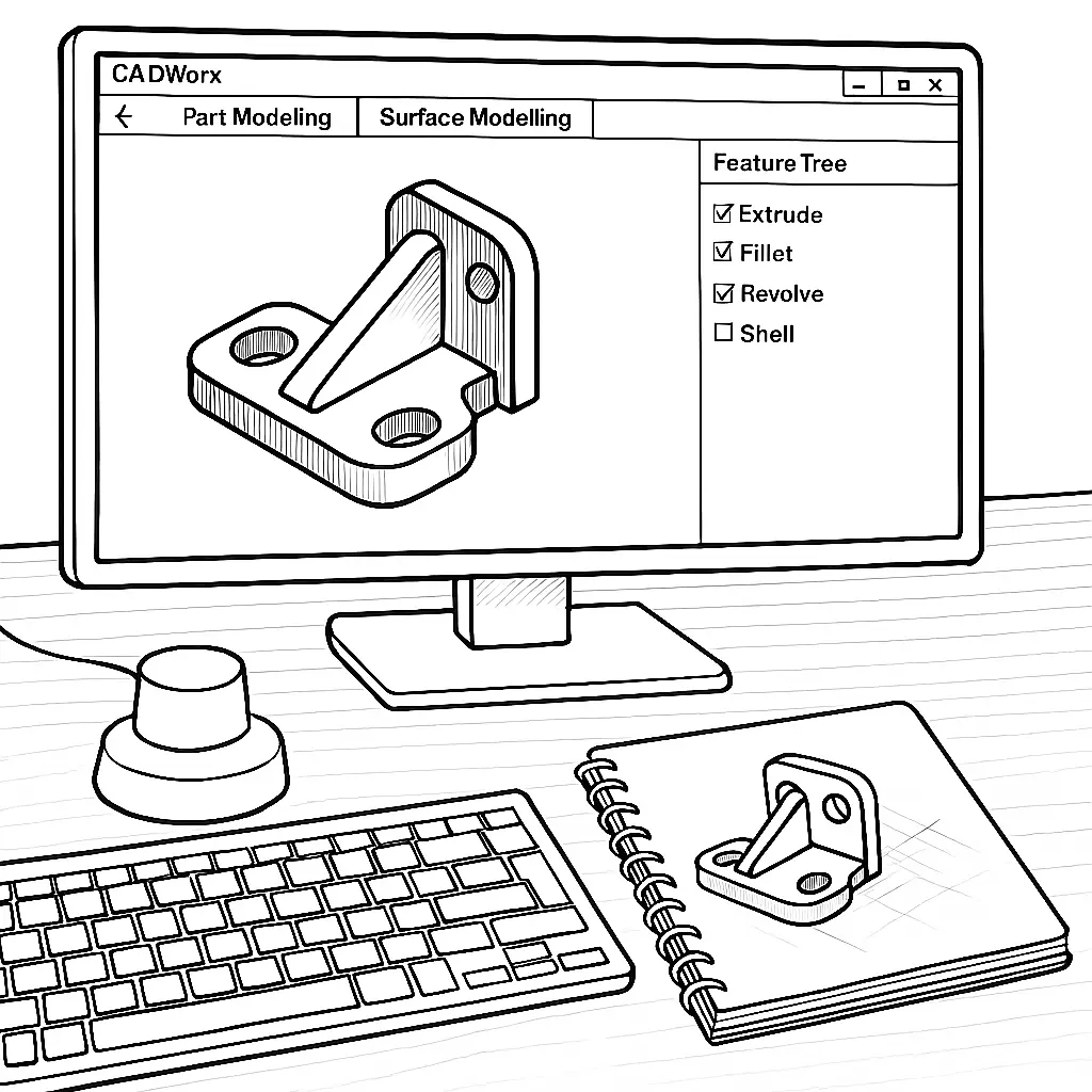 It covers Solid Modelling, Surface Modelling, Sheet Metal, Weldments, Assembly Modelling, Parametric Modelling, and Reverse Engineering ready for analysis, prototyping, and manufacturing.